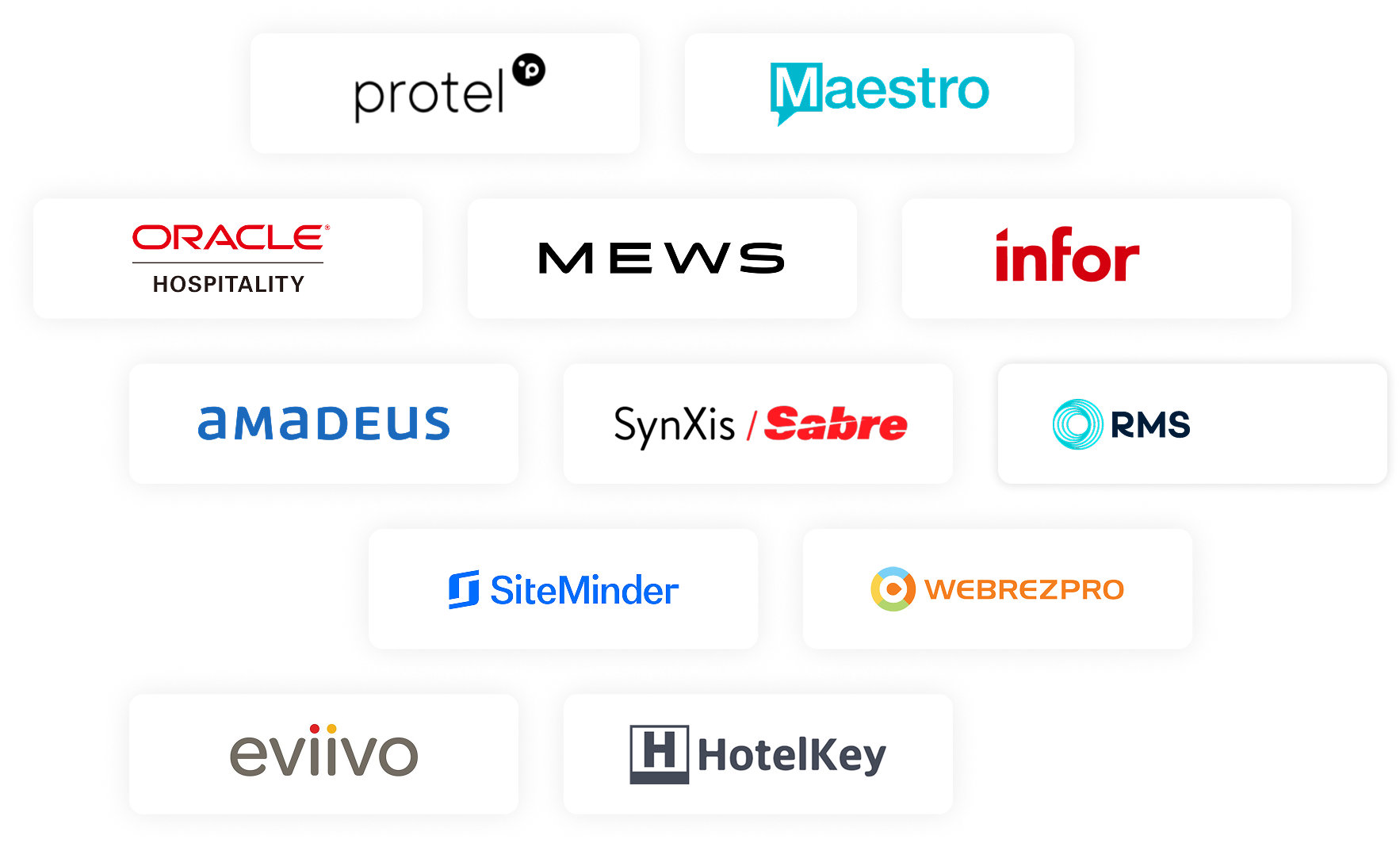 Canary natively integrates with all major hotel property management systems, CRMs, payment providers and most other hotel operations systems.